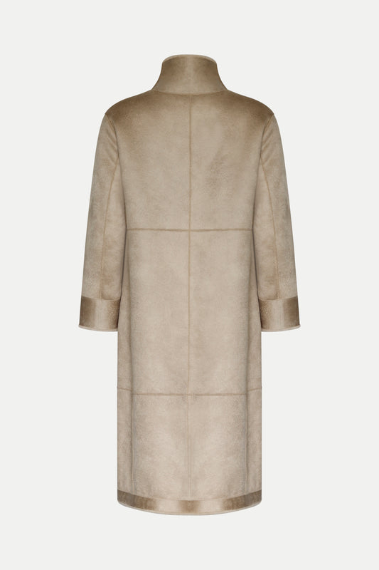 Wendbarer Mantel aus Wollfell in beige