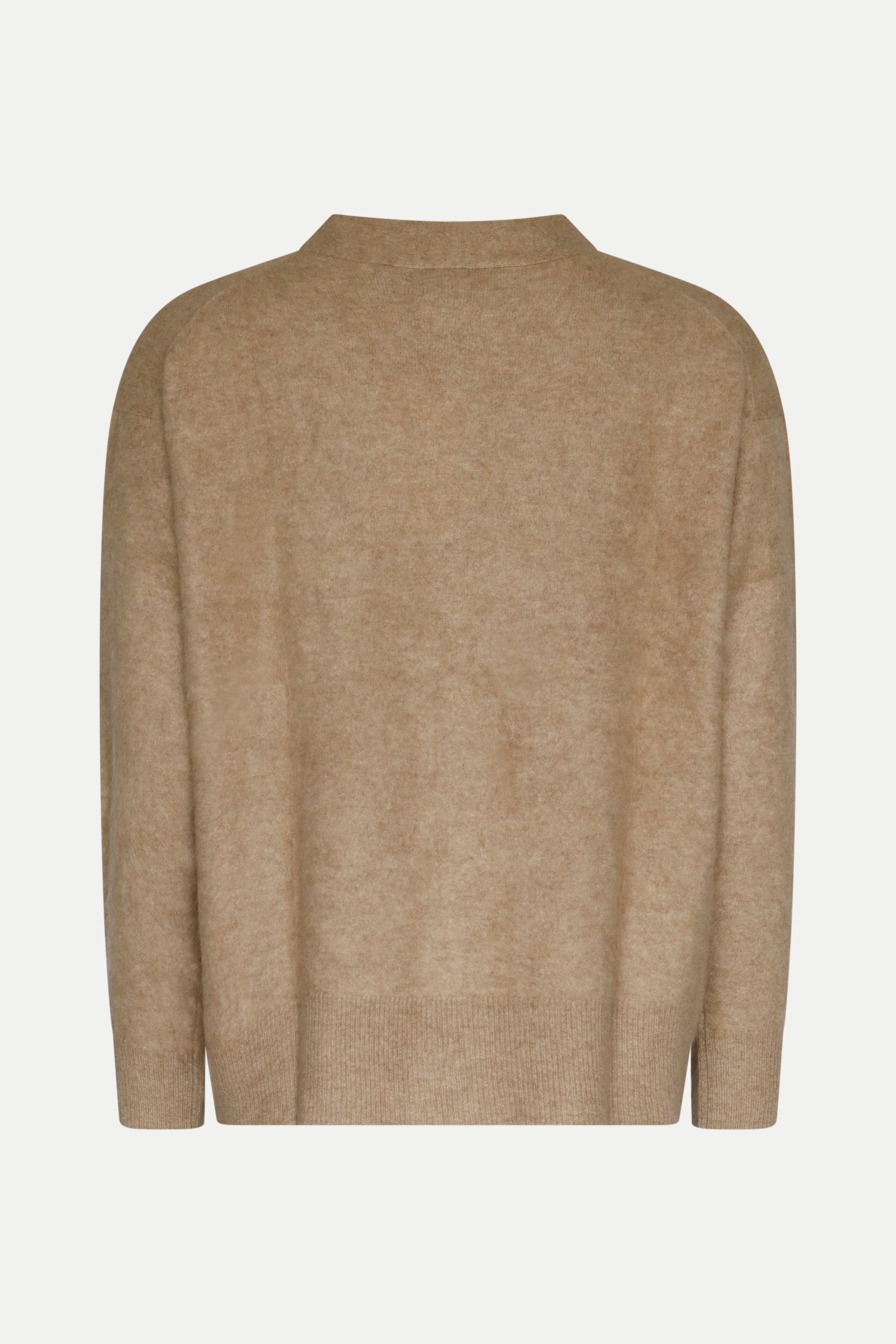 Dieser luxuriöse Cardigan aus 100 % gebürstetem Kaschmir vereint zeitlose Eleganz mit unvergleichlicher Weichheit. Die lockere Passform und der tiefe V-Ausschnitt sorgen für ein entspanntes, dennoch raffiniertes Erscheinungsbild. Große Knöpfe auf der Vorderseite setzen dezente Akzente, während die leicht verkürzte Frontlänge einen modernen Twist verleiht. Perfekt als vielseitiges Layering-Piece – ob über einer Bluse fürs Büro oder lässig kombiniert mit Jeans im Alltag.