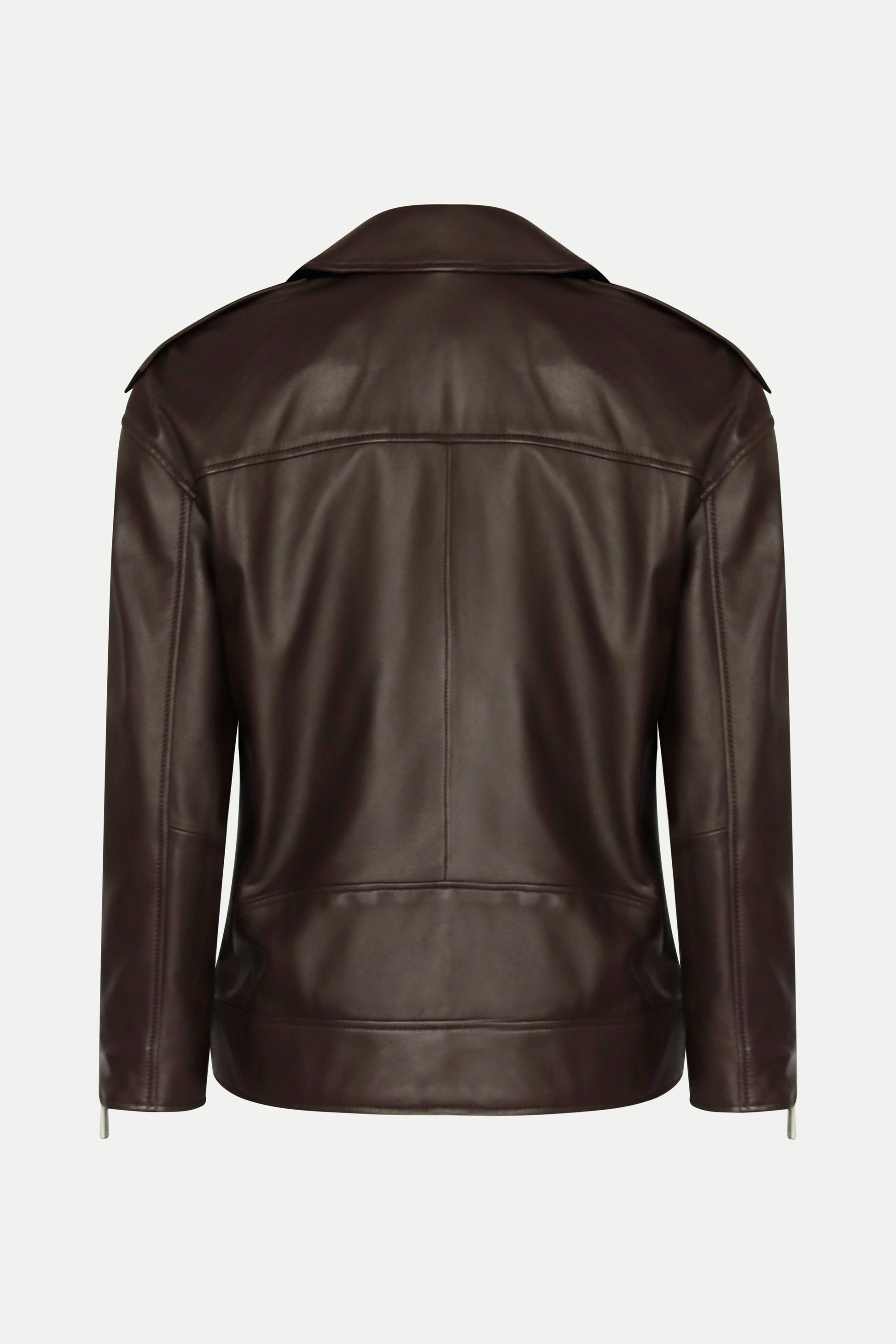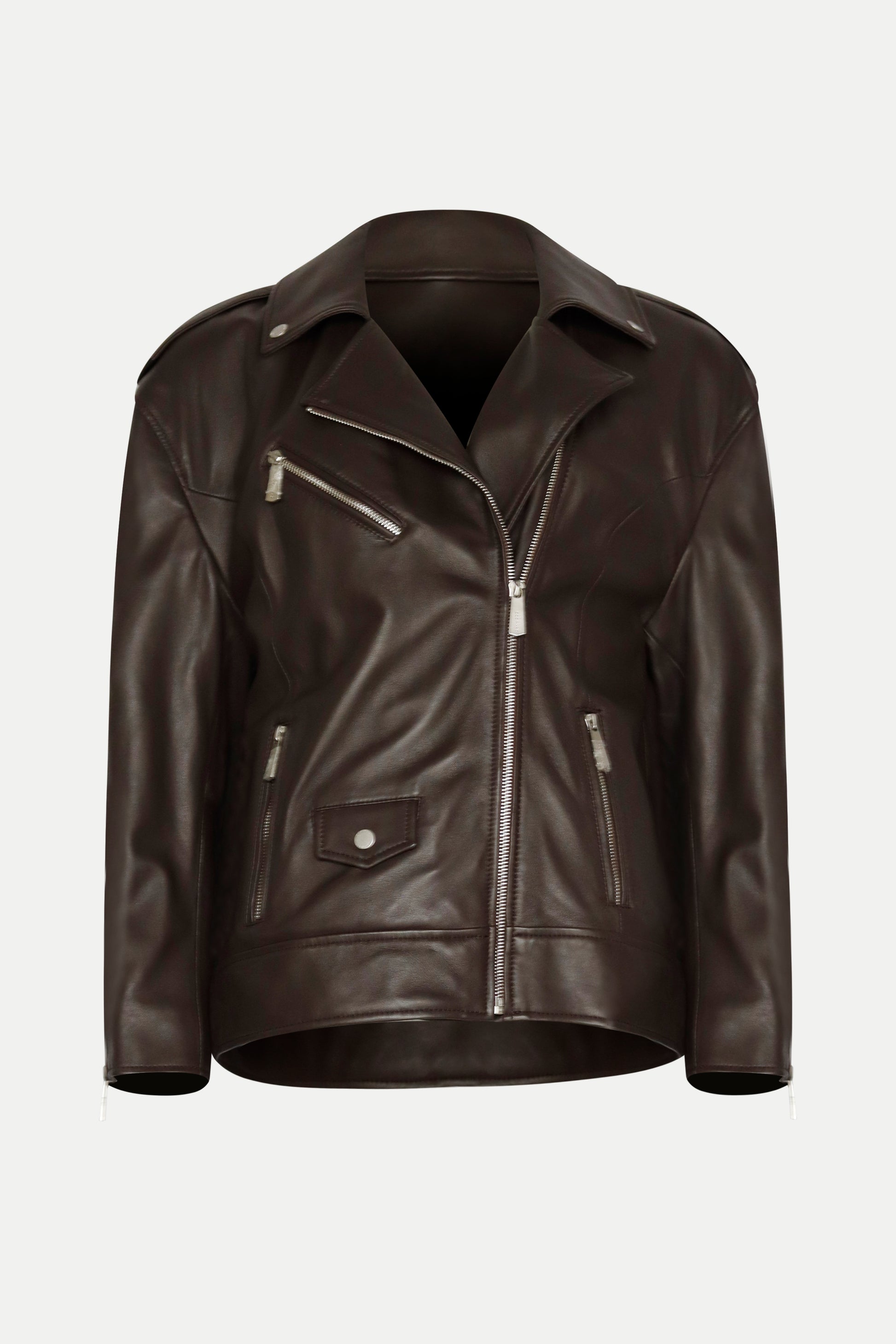 Oversized Bikerjacke aus Leder in dunkelbraun