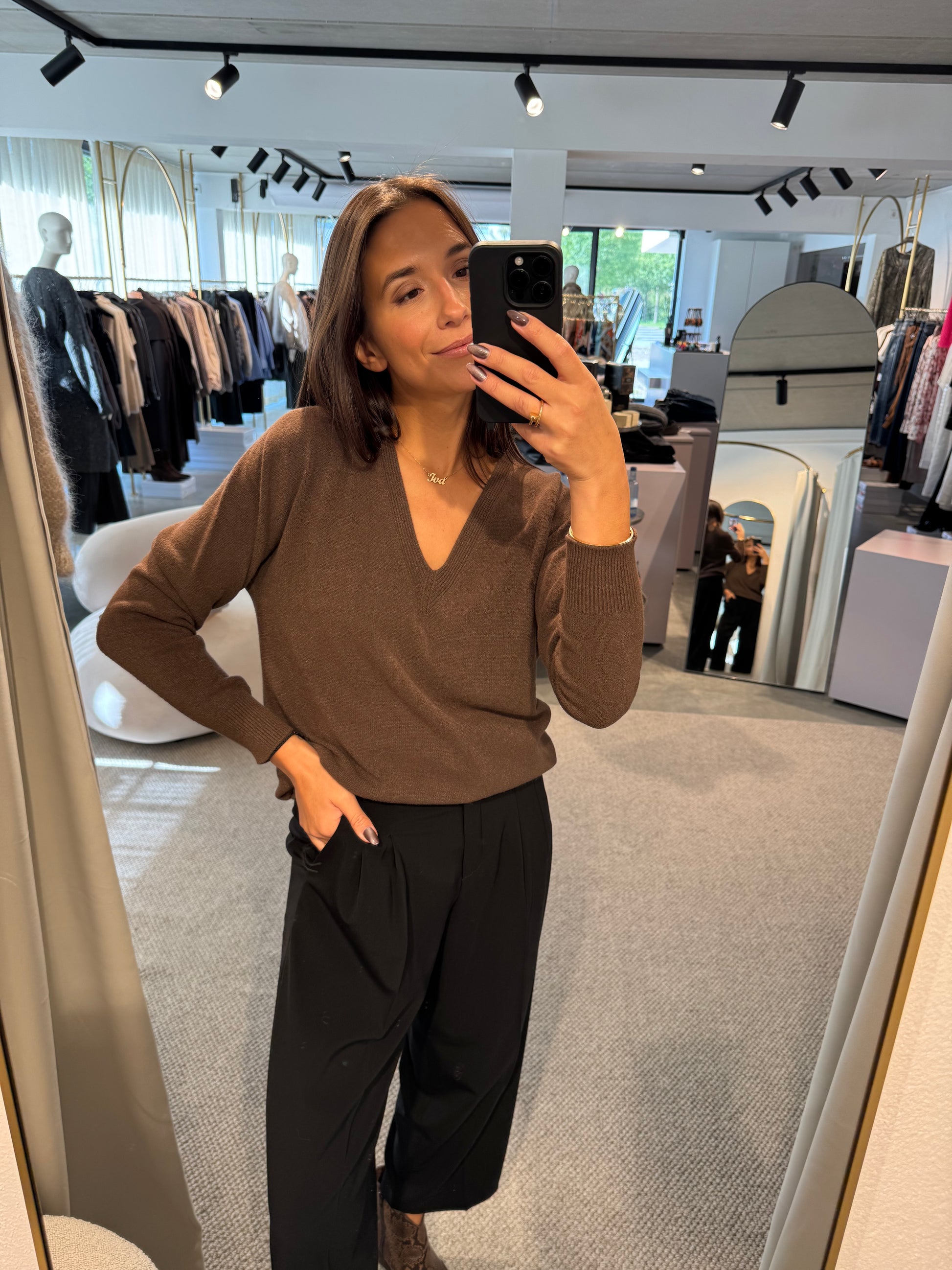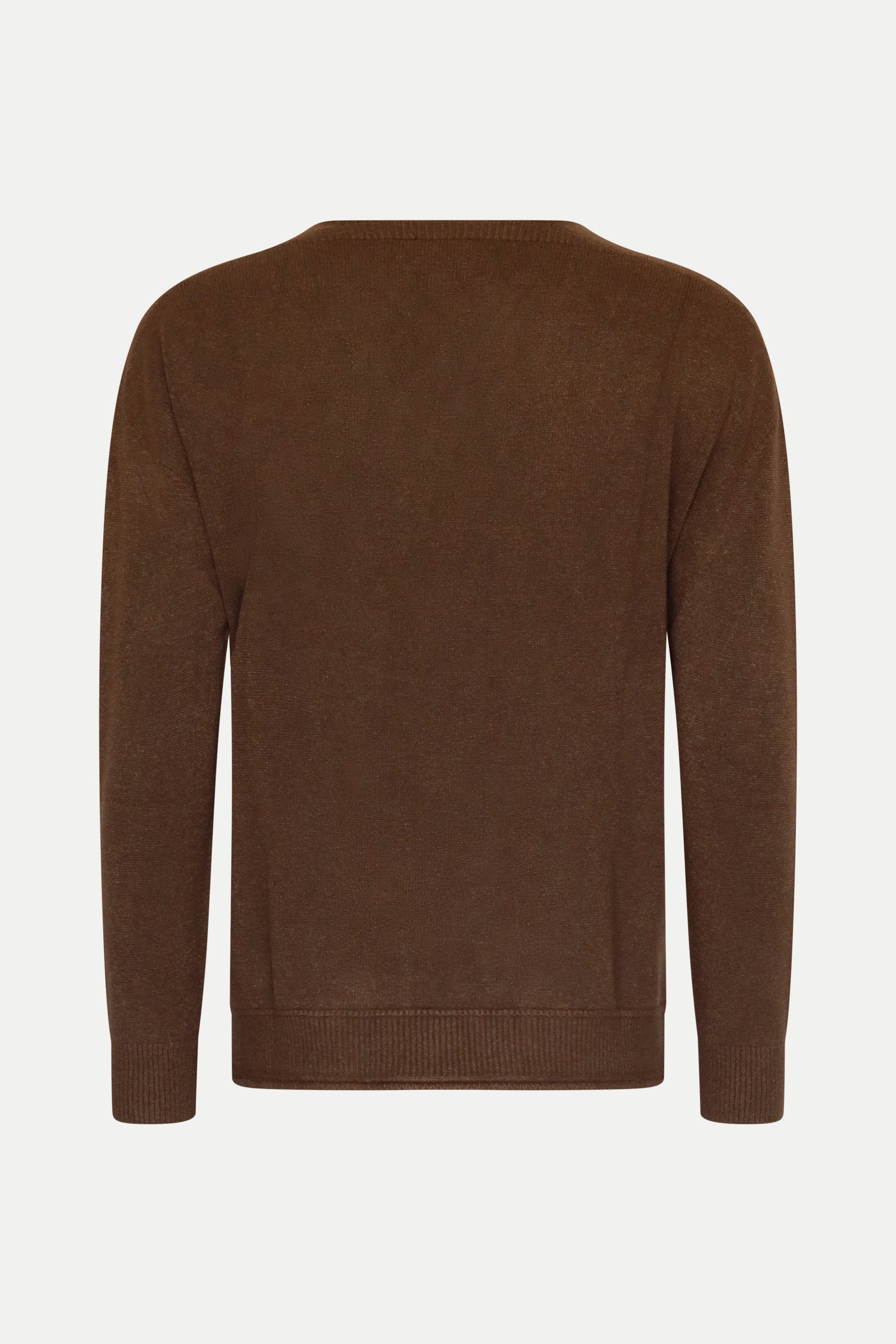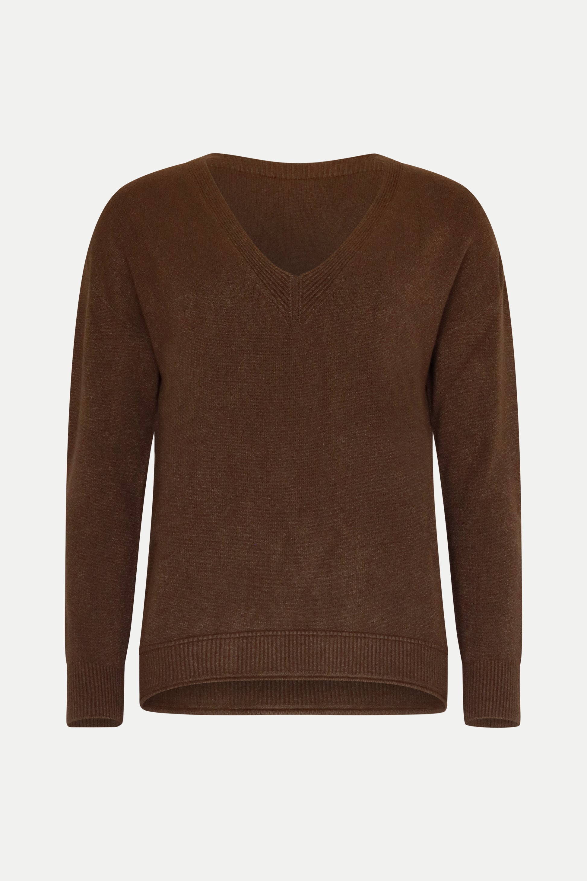 Ein echtes Essential für jede Garderobe – unser brauner Pullover mit klassischem V-Ausschnitt.