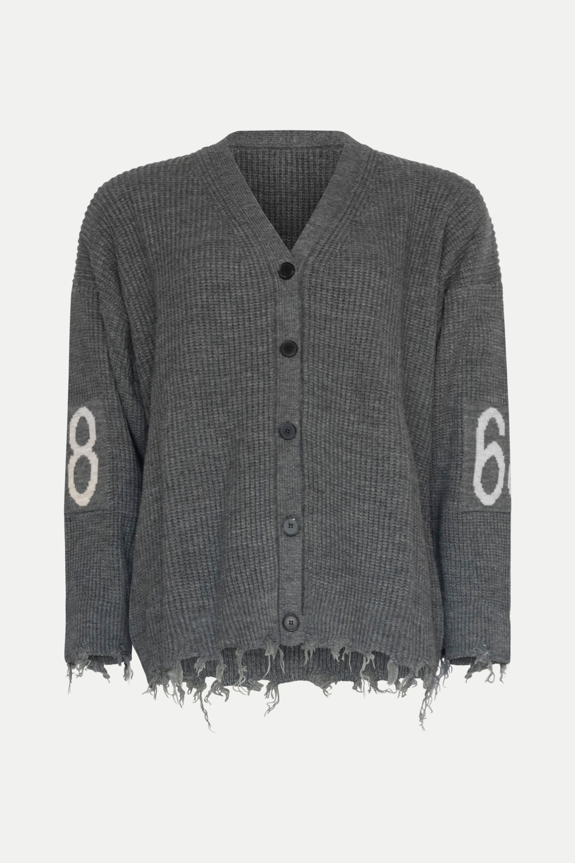Strickjacke im Destroyed-Look mit Logo-Detail