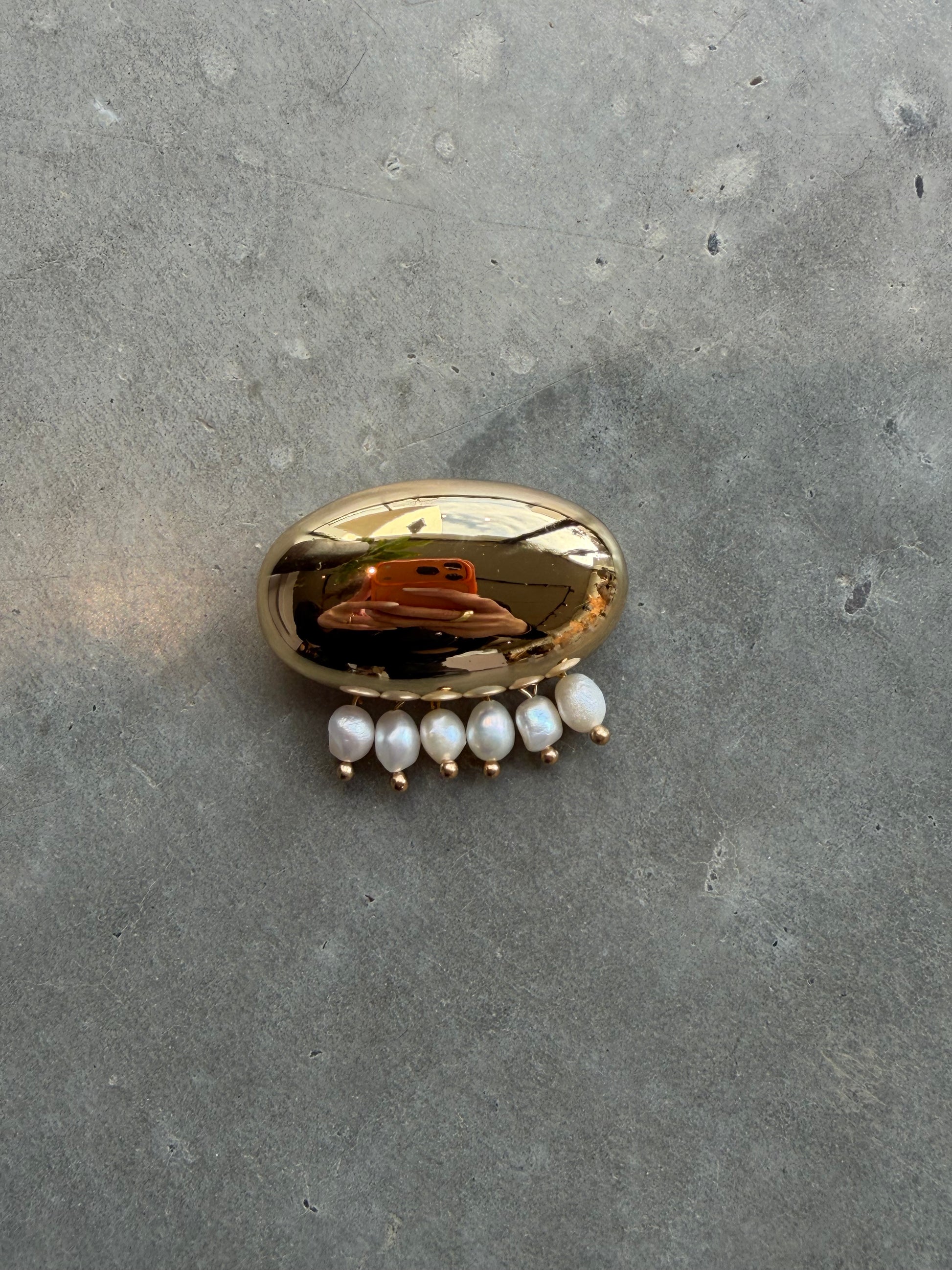 Brosche mit Perlendetails vergoldet