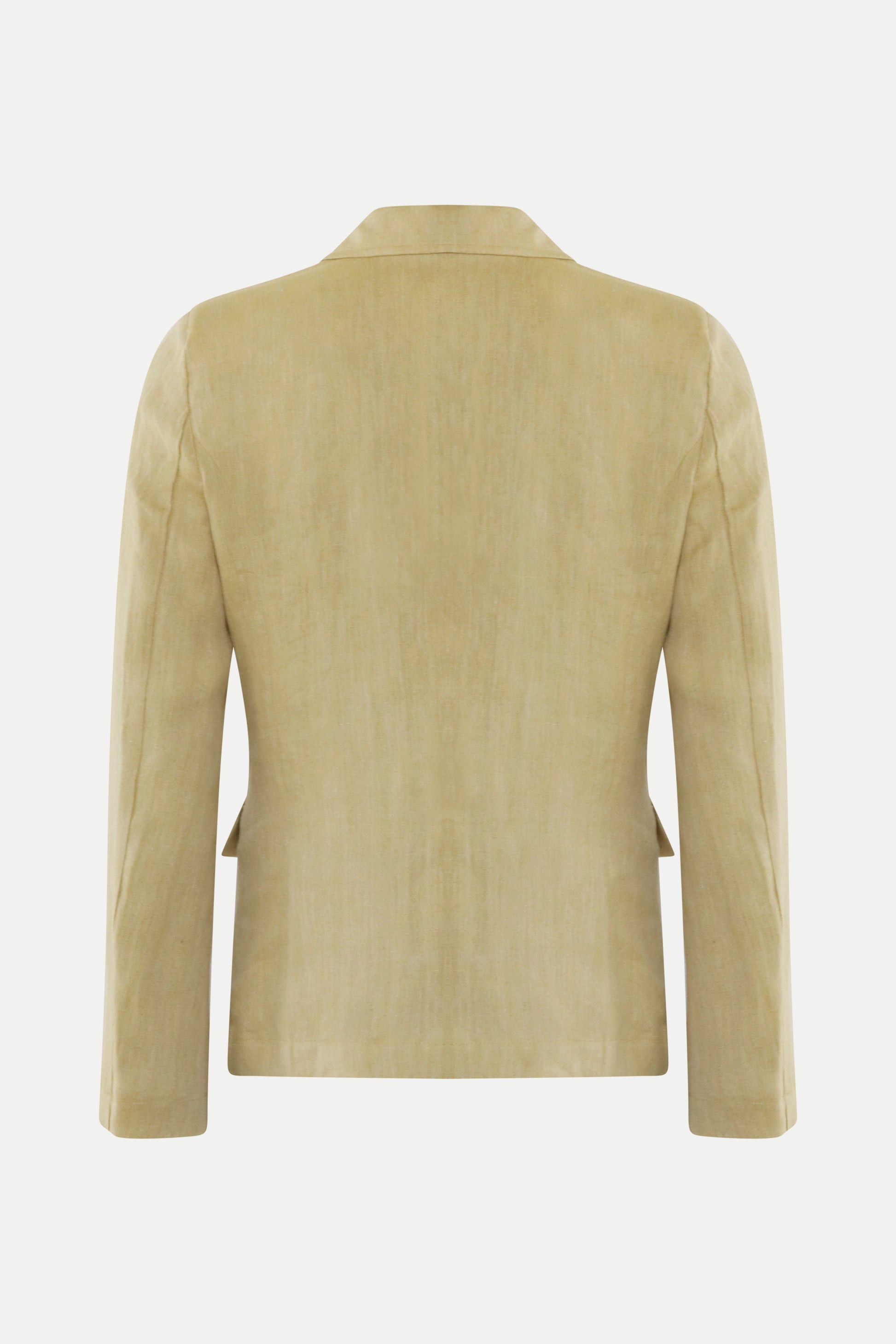 Die Knopfreihe und Klappentaschen unterstreichen den Tailoring-Charakter, gleichzeitig macht die leichte Struktur des Leinens den Blazer zum perfekten Sommerbegleiter – ob im Business oder kombiniert mit Shorts für entspannte City-Looks. Für einen lässigen Look kann der Blazer ruhig eine Nummer größer getragen werden – so wirkt er besonders modern und entspannt.