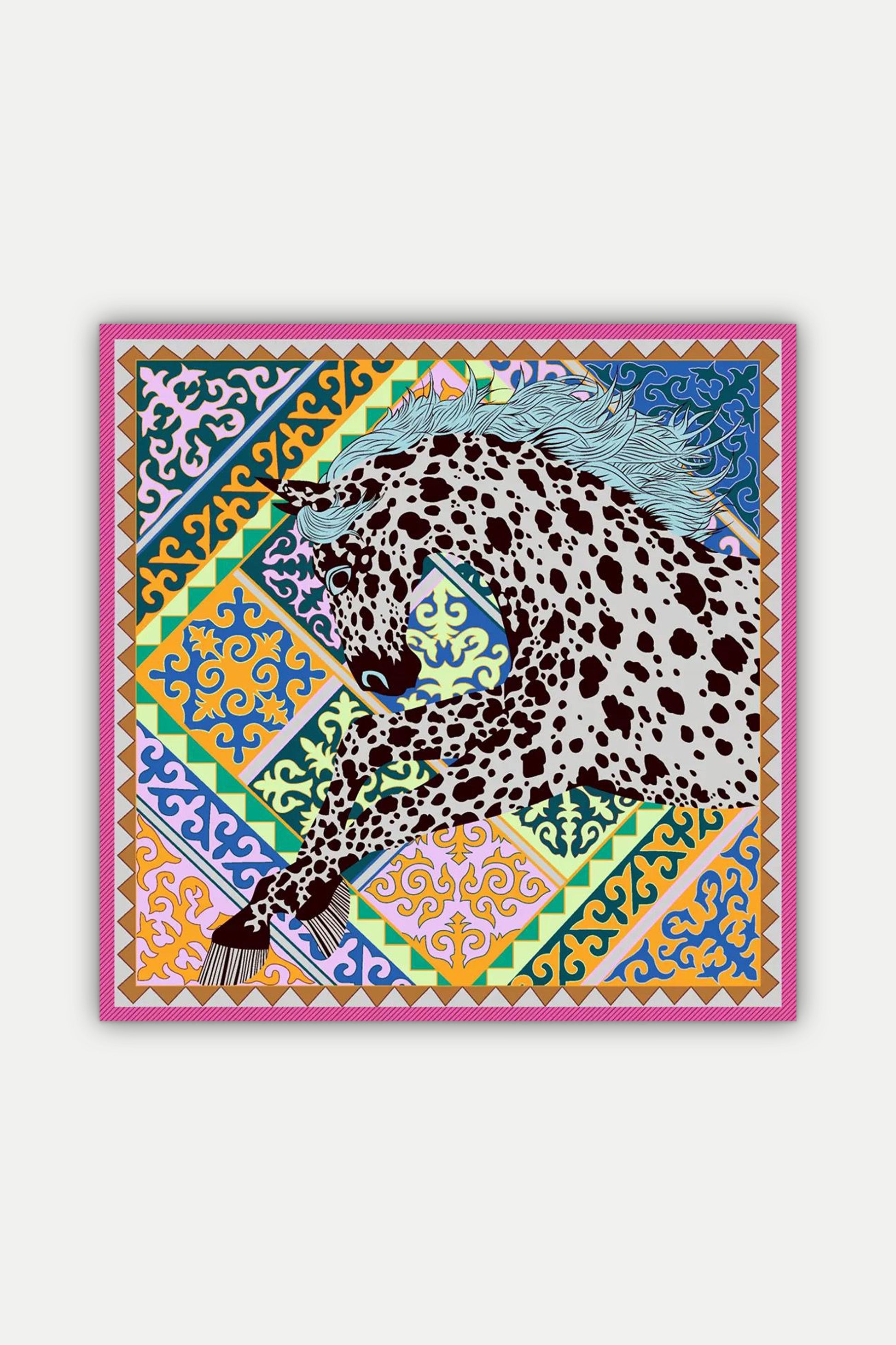 Tauche ein in die Welt der Farben und des Luxus mit diesem hochwertigen Seidentuch (Maße: 130 cm x 130 cm).