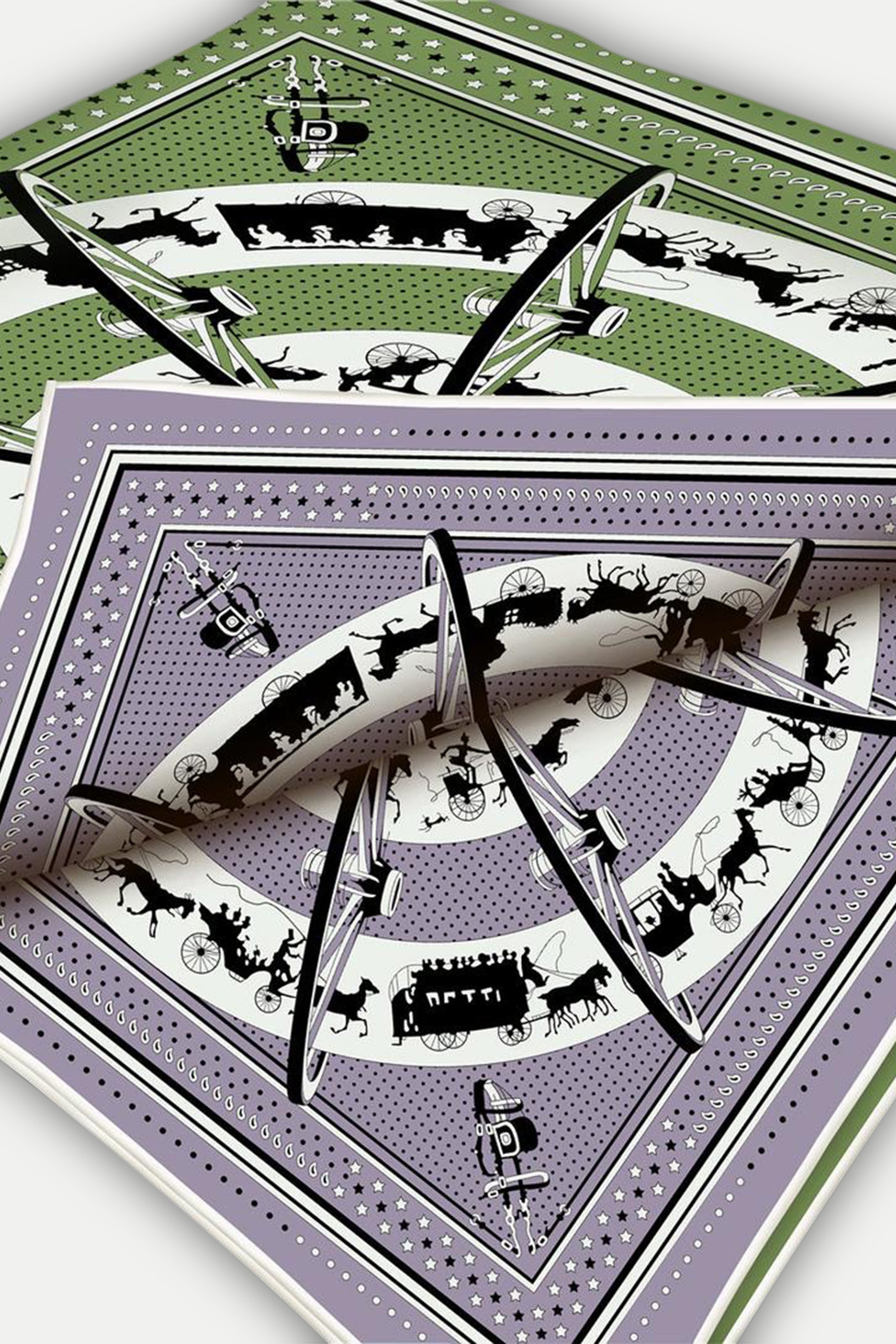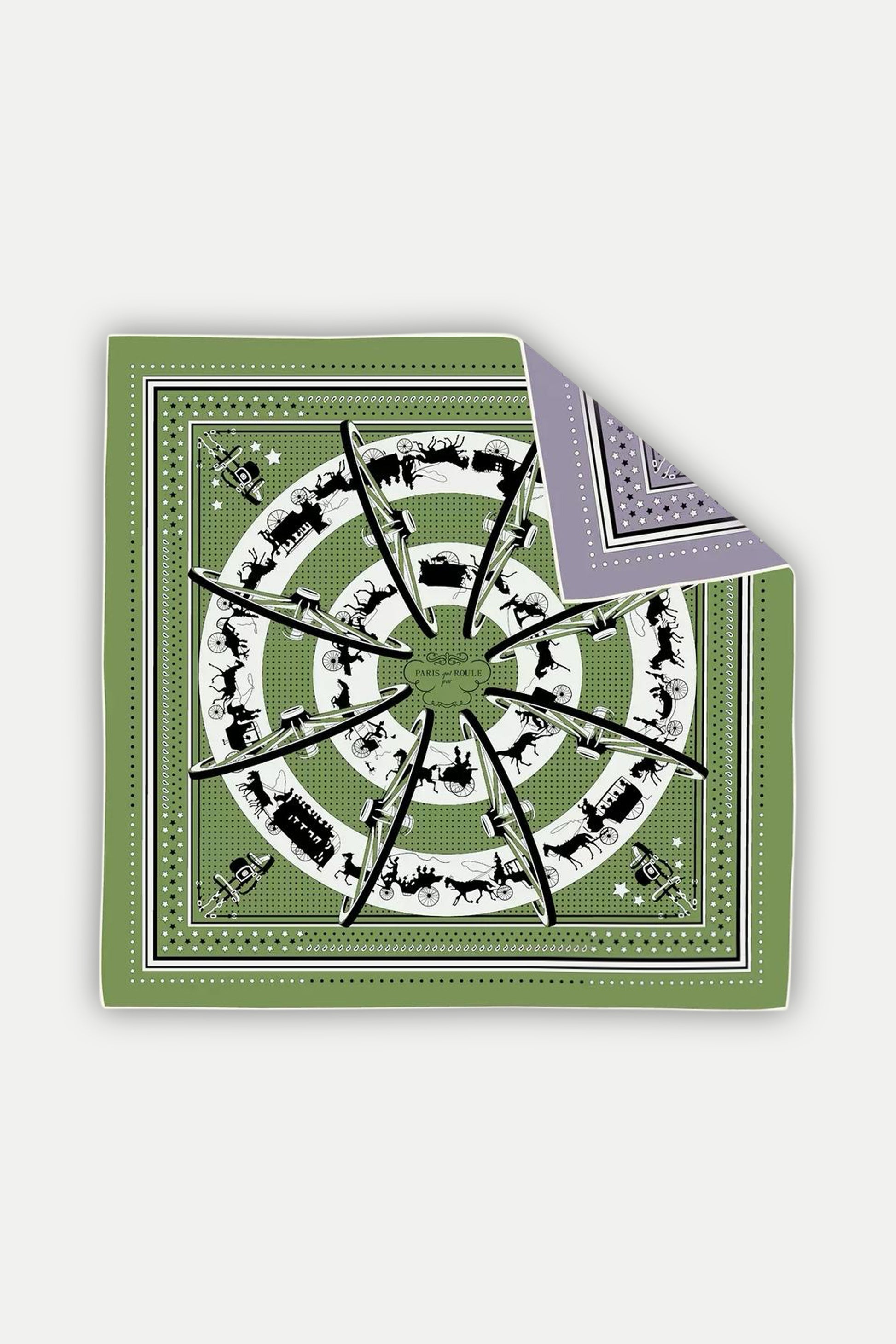 Bewegung trifft auf Stil – das Seidentuch „Paris qui Roule“ ist eine Ode an das pulsierende Leben der Stadt und die Kunst, sich mit Anmut zu bewegen.