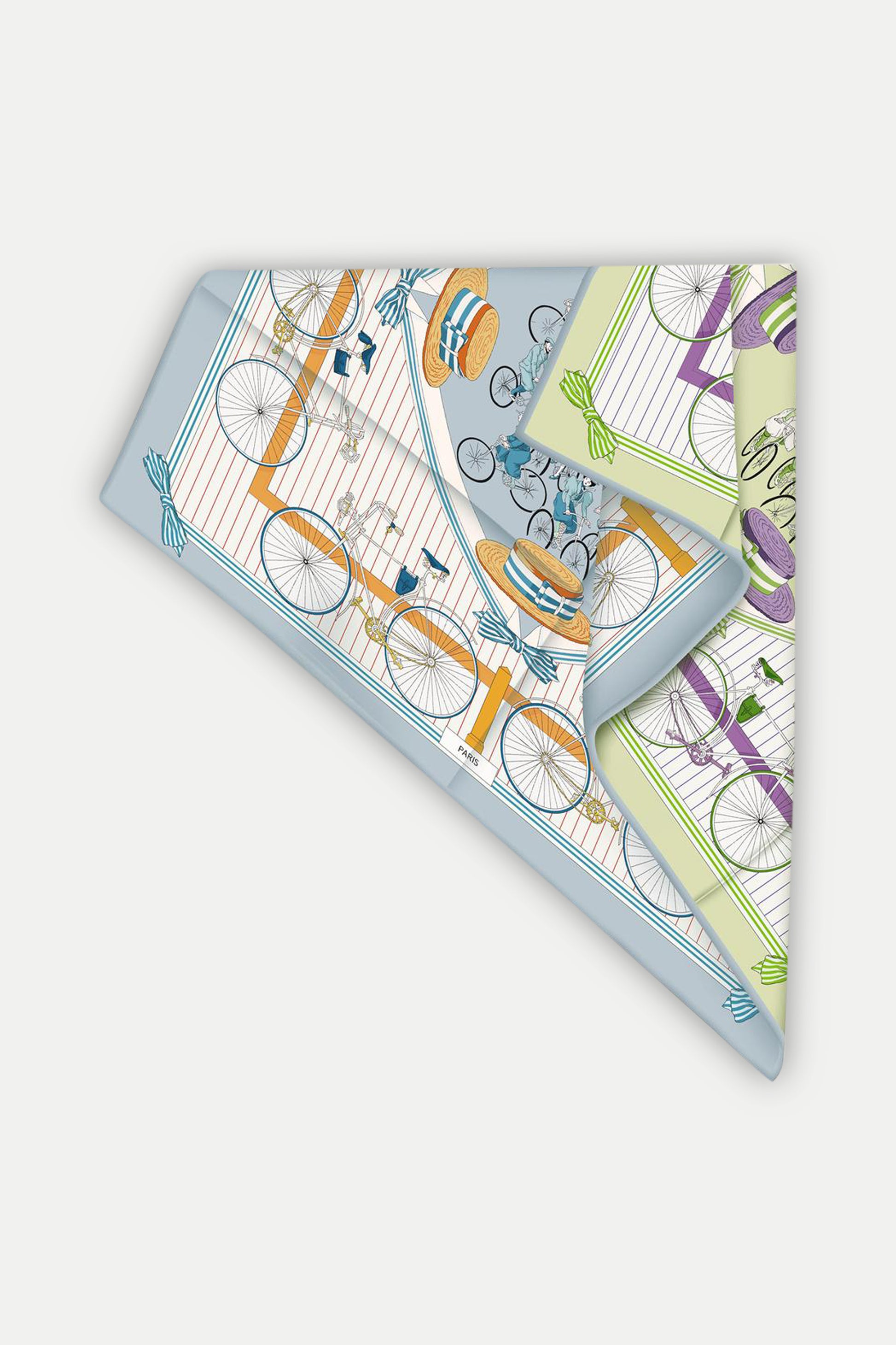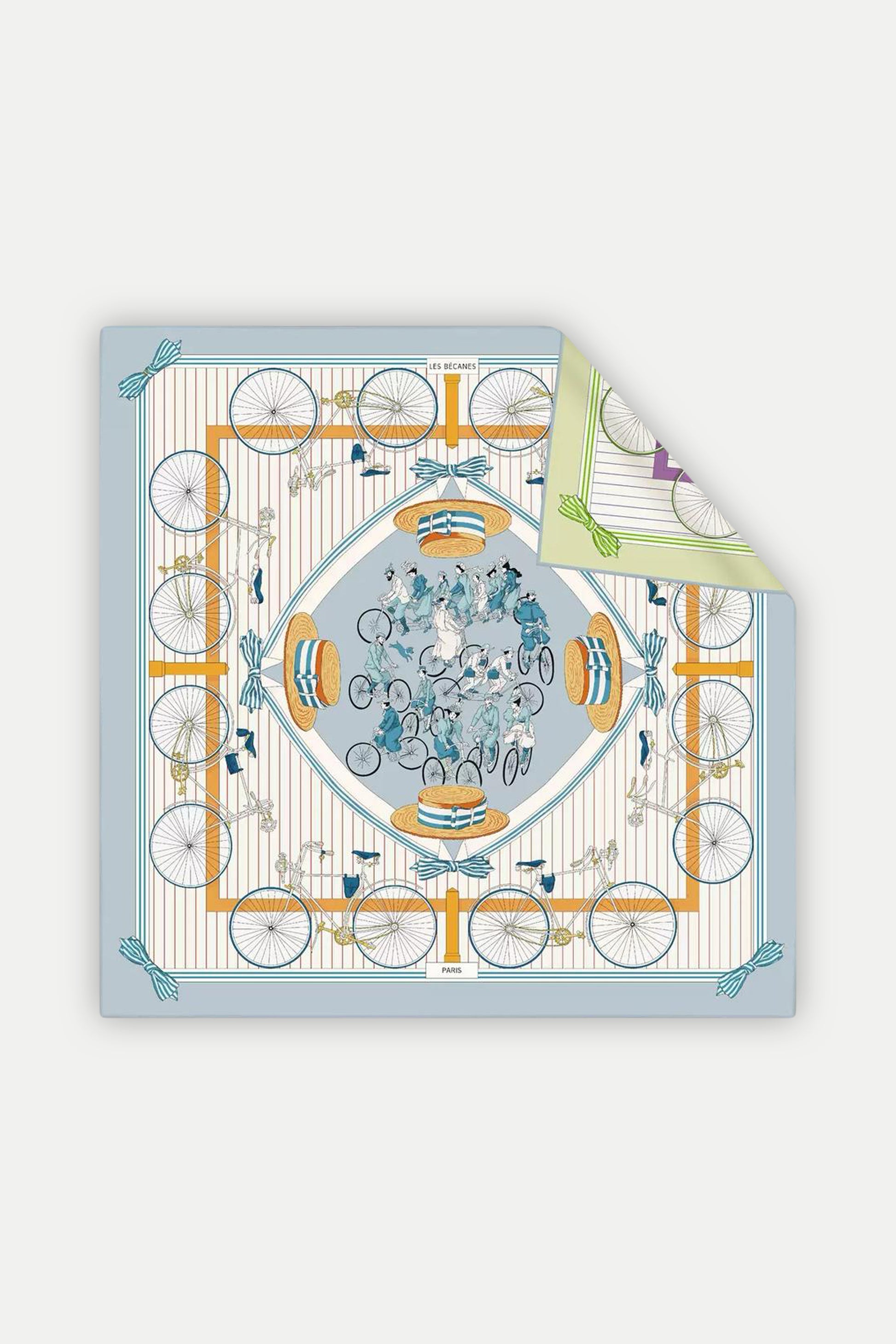 Ein Hauch von Nostalgie und französischem Esprit – das Seidentuch „Les Bécanes“ feiert die Leichtigkeit des Lebens in Bewegung.