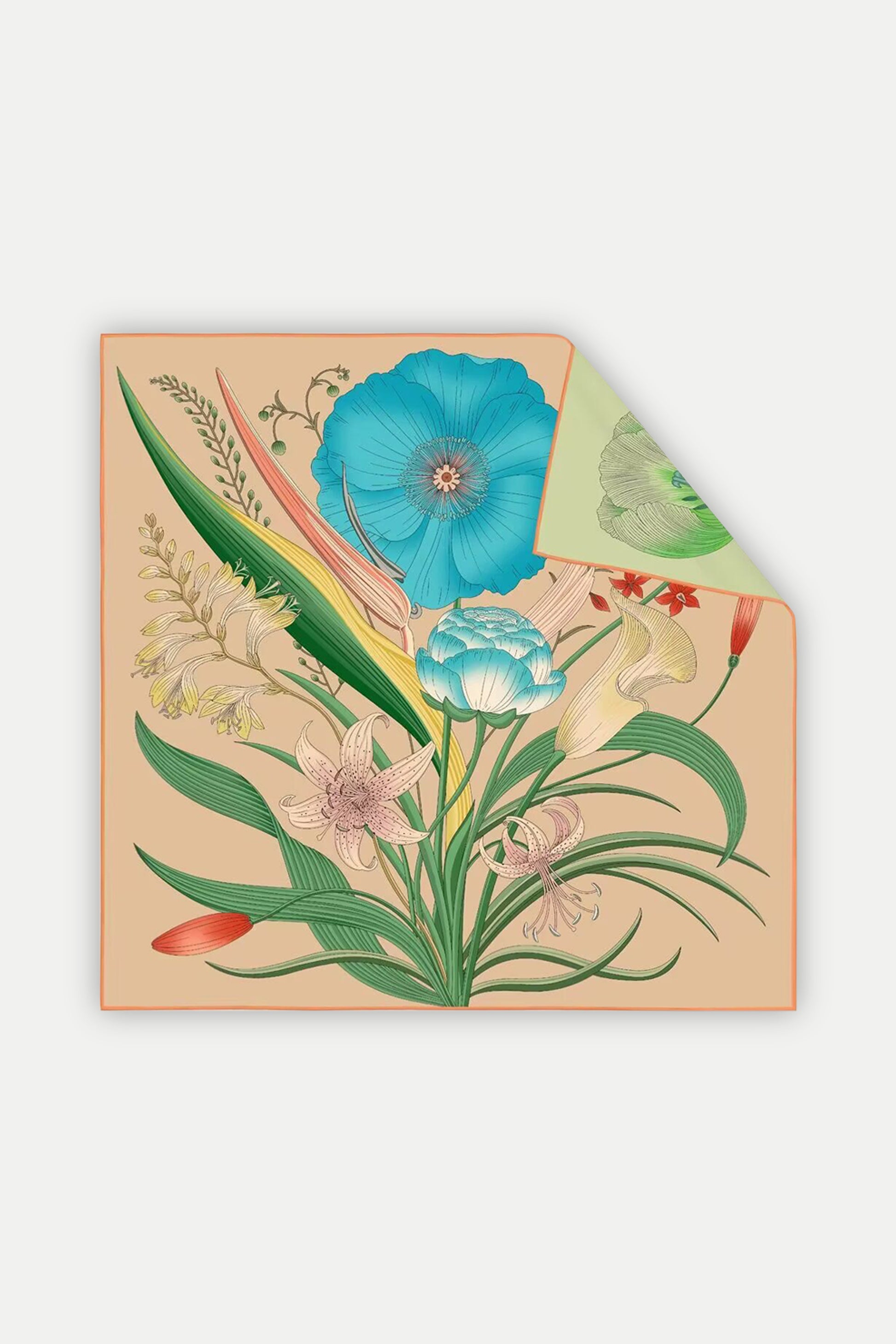 Ein Accessoire für Liebhaberinnen der Natur und feiner Kunst, das Blüte, Bewegung und Zeitlosigkeit in einem einzigen, eleganten Ausdruck vereint – ein Stück ewiger Frische in reiner Seide.