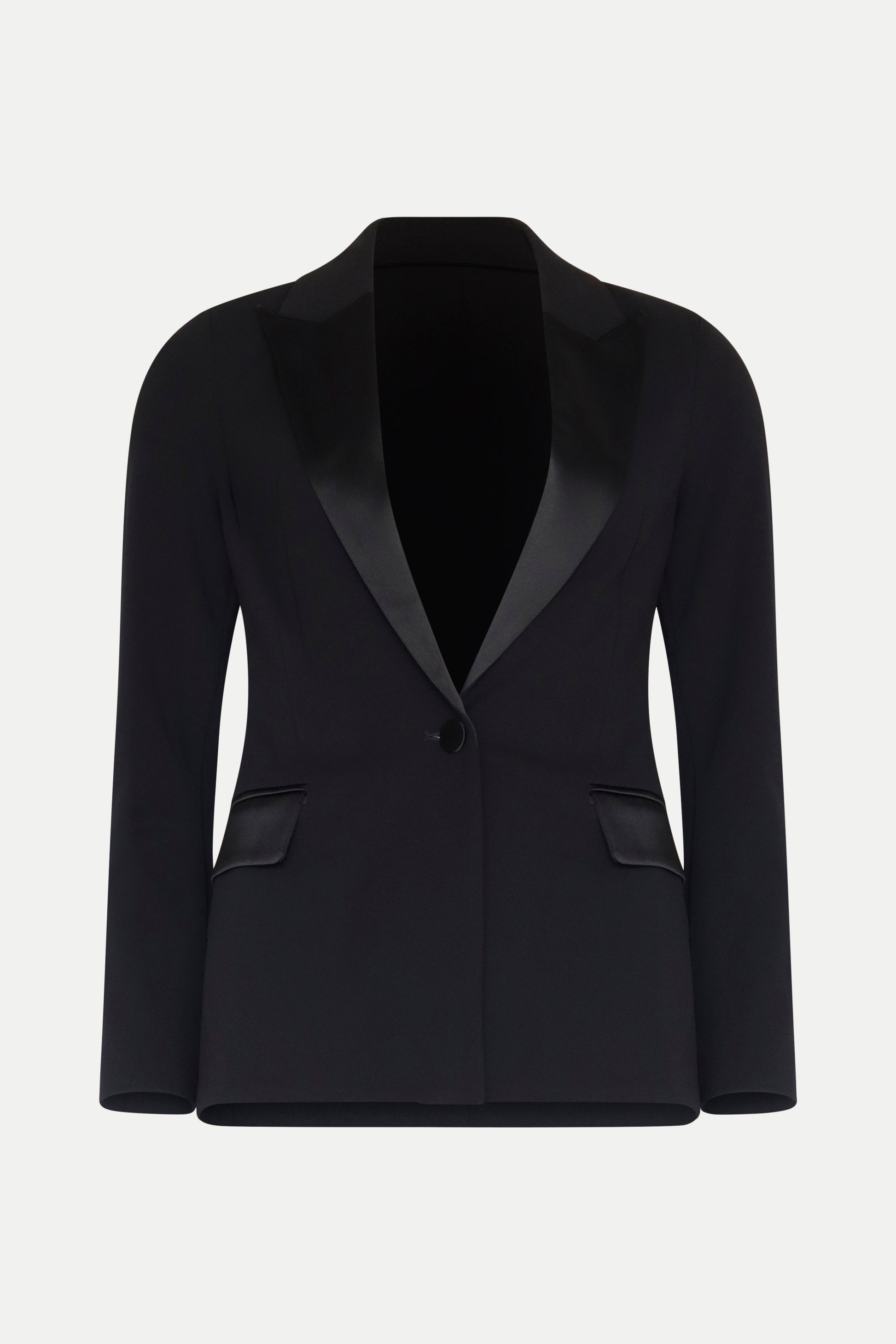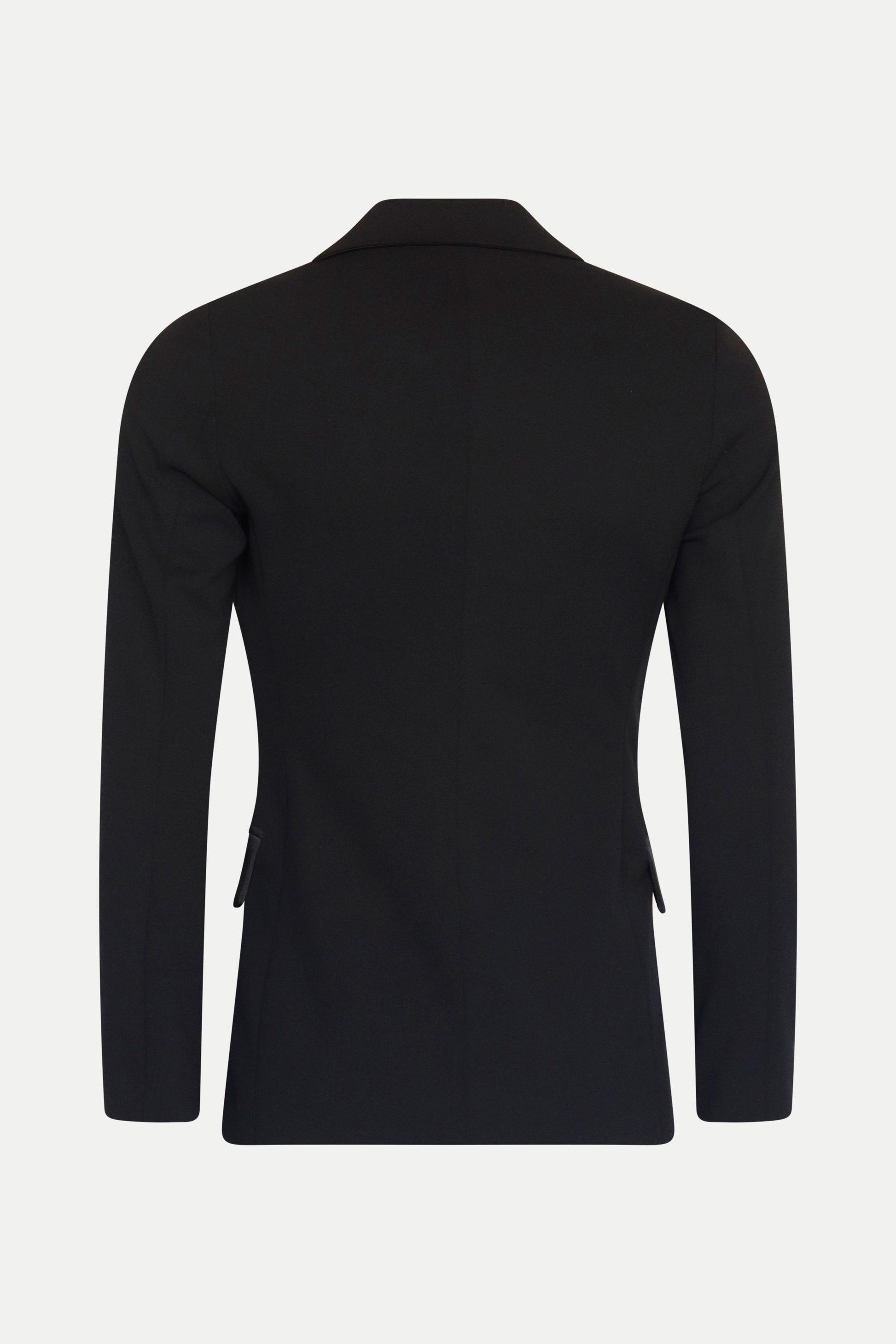 Dieser edle schwarze Blazer ist ein echtes Essential für stilvolle Auftritte. Der elegante Satinrevers und die paspelierten Pattentaschen verleihen ihm eine luxuriöse Note, die ihn sowohl fürs Business als auch für besondere Anlässe zum perfekten Begleiter macht.
