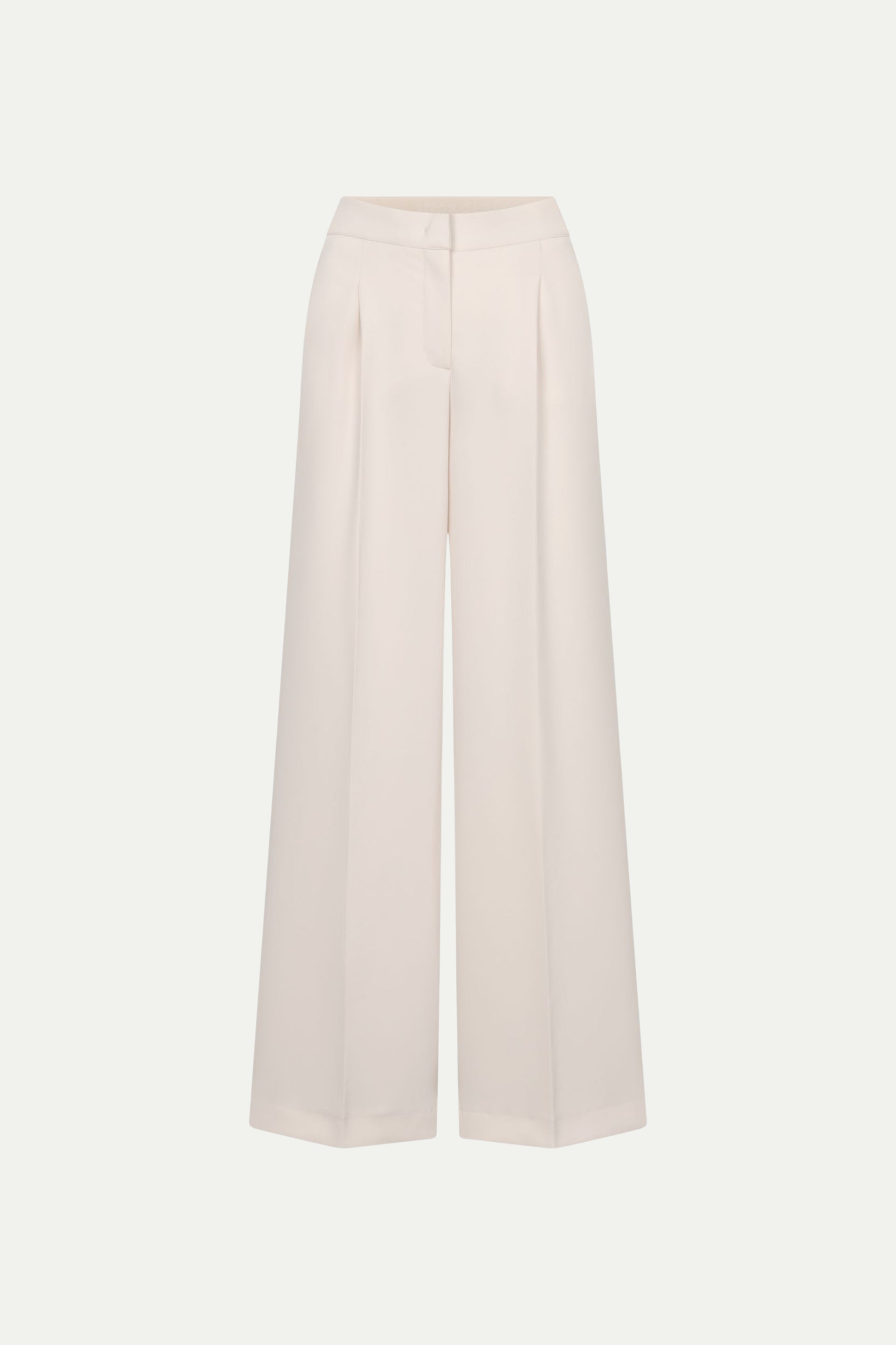 Weit geschnittene Hose mit klarer, eleganter Linienführung. Das Modell überzeugt durch einen hohen Bund, eine glatte Frontpartie und dezent eingearbeitete Bundfalten, die für eine fließende Silhouette sorgen. Der gerade, lange Beinverlauf verleiht der Hose eine moderne und zeitlose Ausstrahlung. Ein vielseitiges Essential, das sich sowohl für elegante als auch für minimalistische Looks eignet.